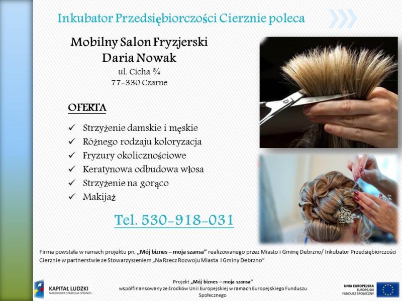 Firma powstała w ramach projektu Mój biznes-moja szansa