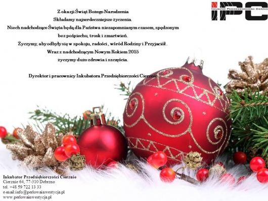 Z okazji nadchodzących Świąt Bożego Narodzenia pragniemy złożyć Państwu najserdeczniejsze życzenia...