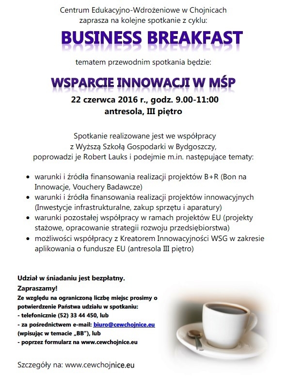 Zaproszenie na spotkanie z cyklu śniadań biznesowych