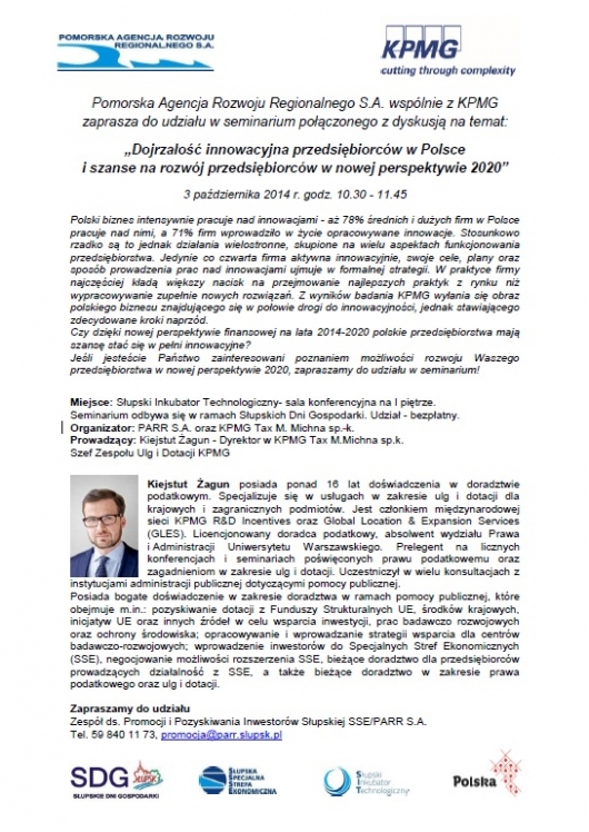Zaproszenie do udziału w seminariumWięcej informacji w tej sprawie udziela: