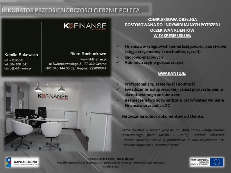 KB FINANSE Biuro Rachunkowe K.Bukowska-firma powstała w ramach projektu Mój biznes-moja szansa