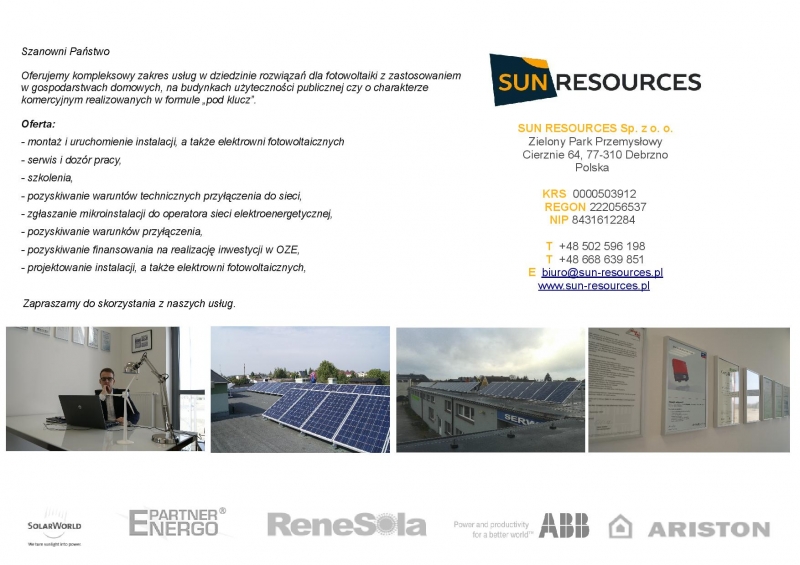 Przykładem dobrej współpracy jest rozwijająca się działalność firmy SUN RESOURCES.